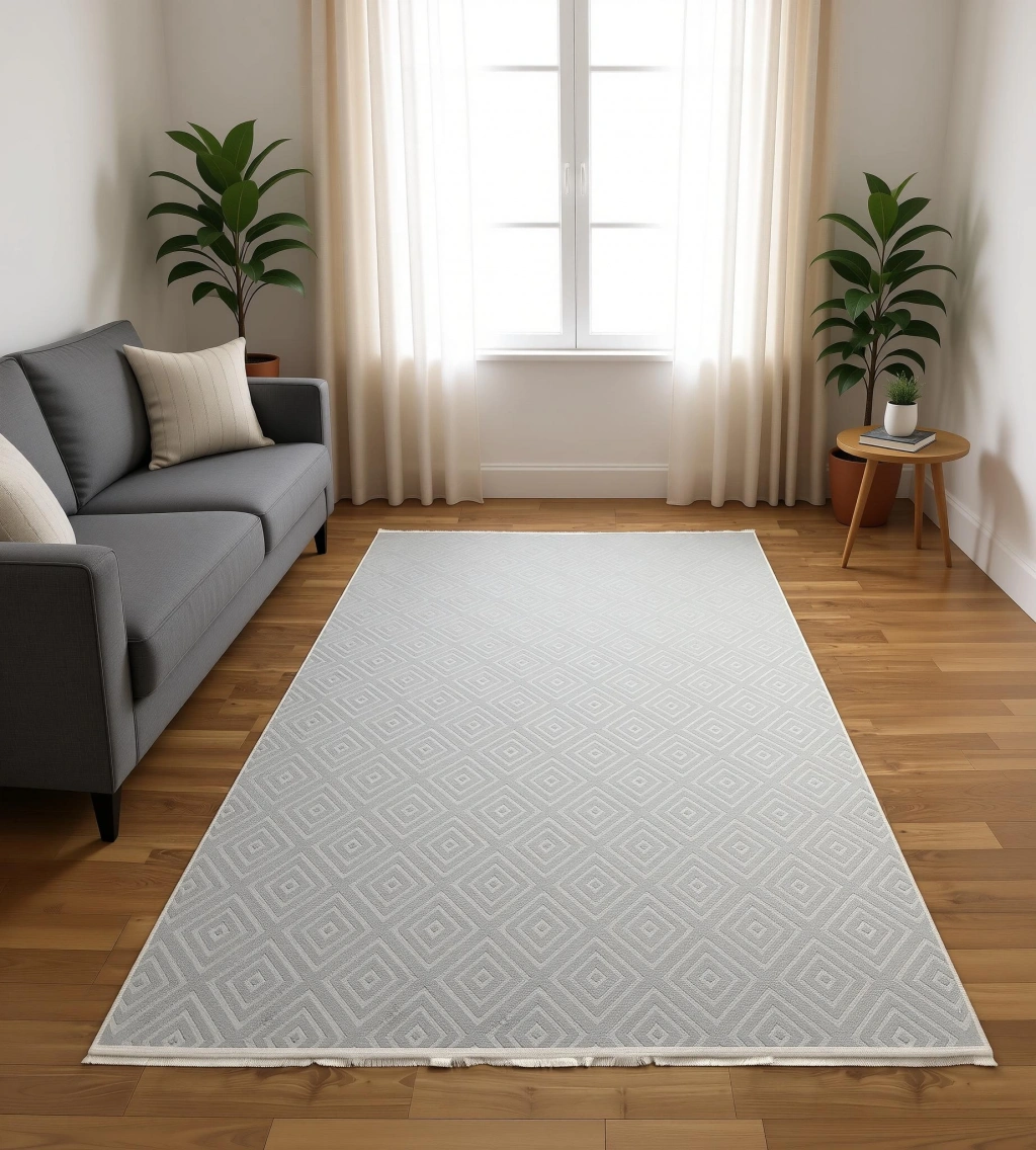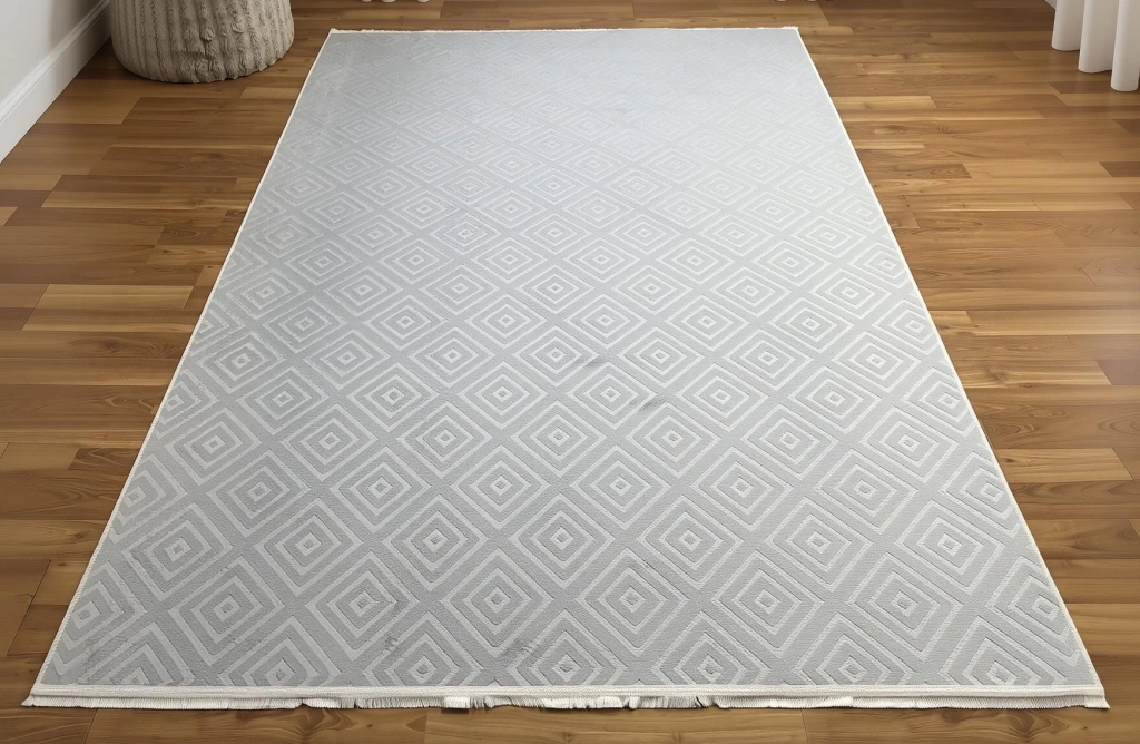 Bademli Halı Lüx Kaymaz Taban Dekoratif Halı 9018 Gri