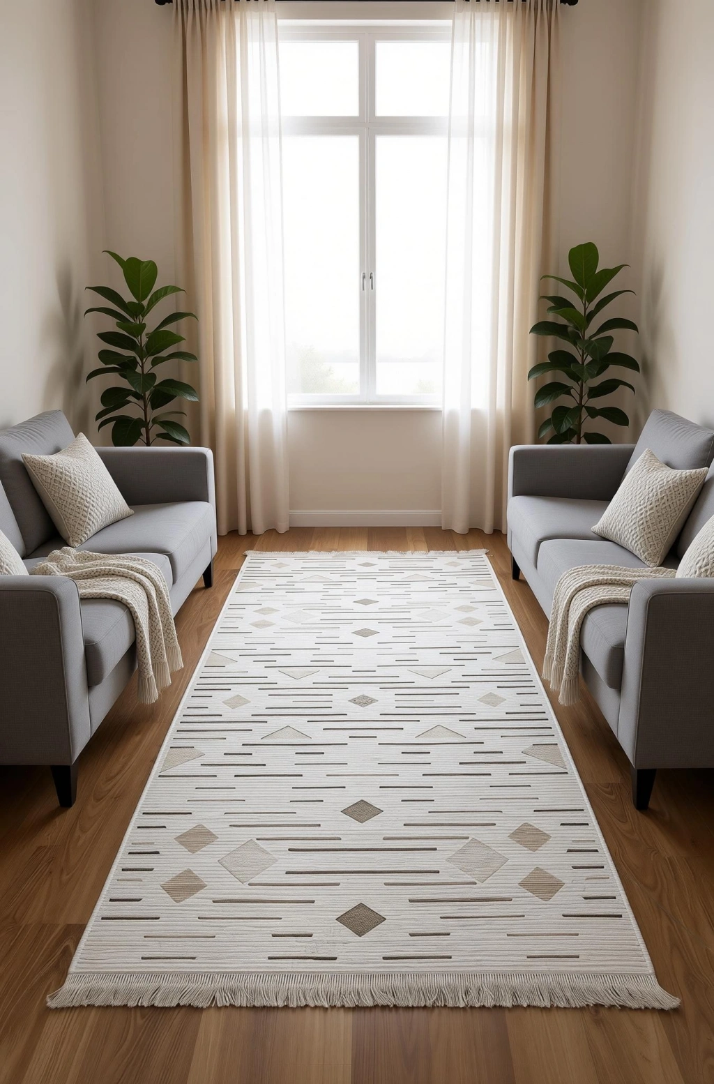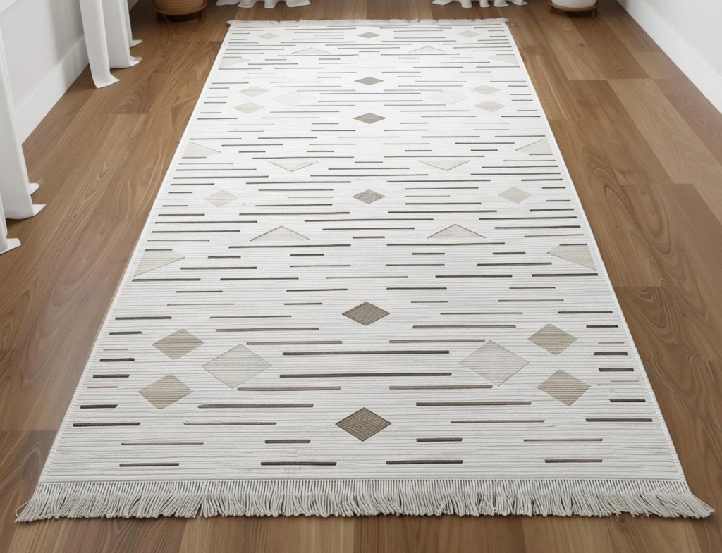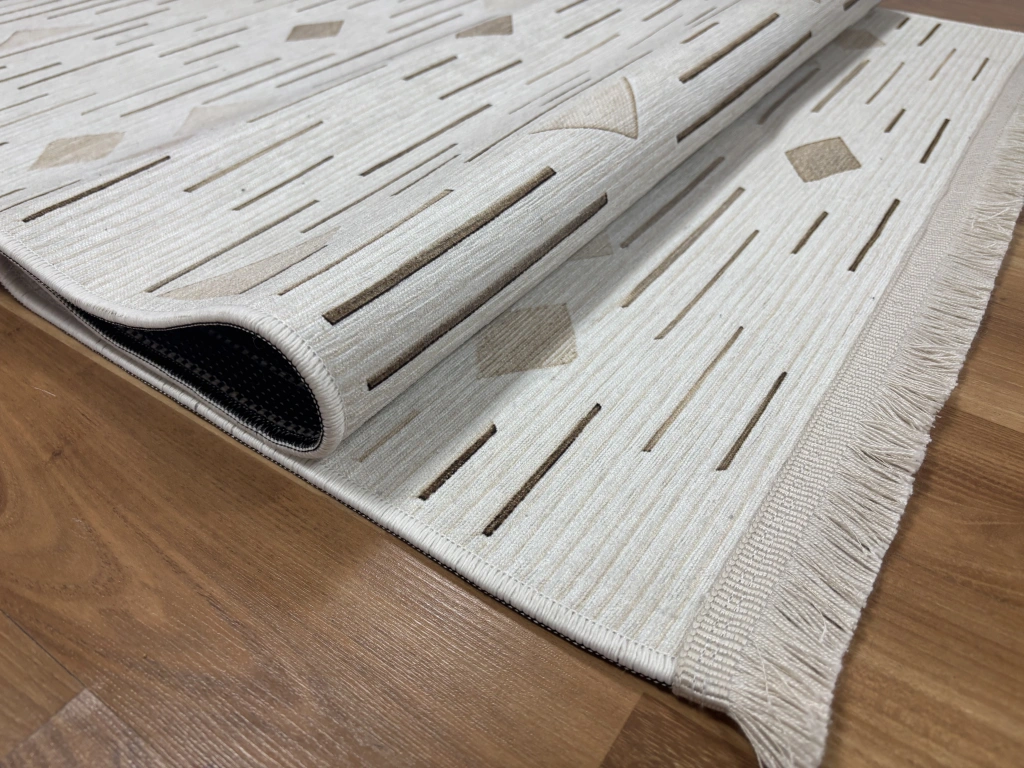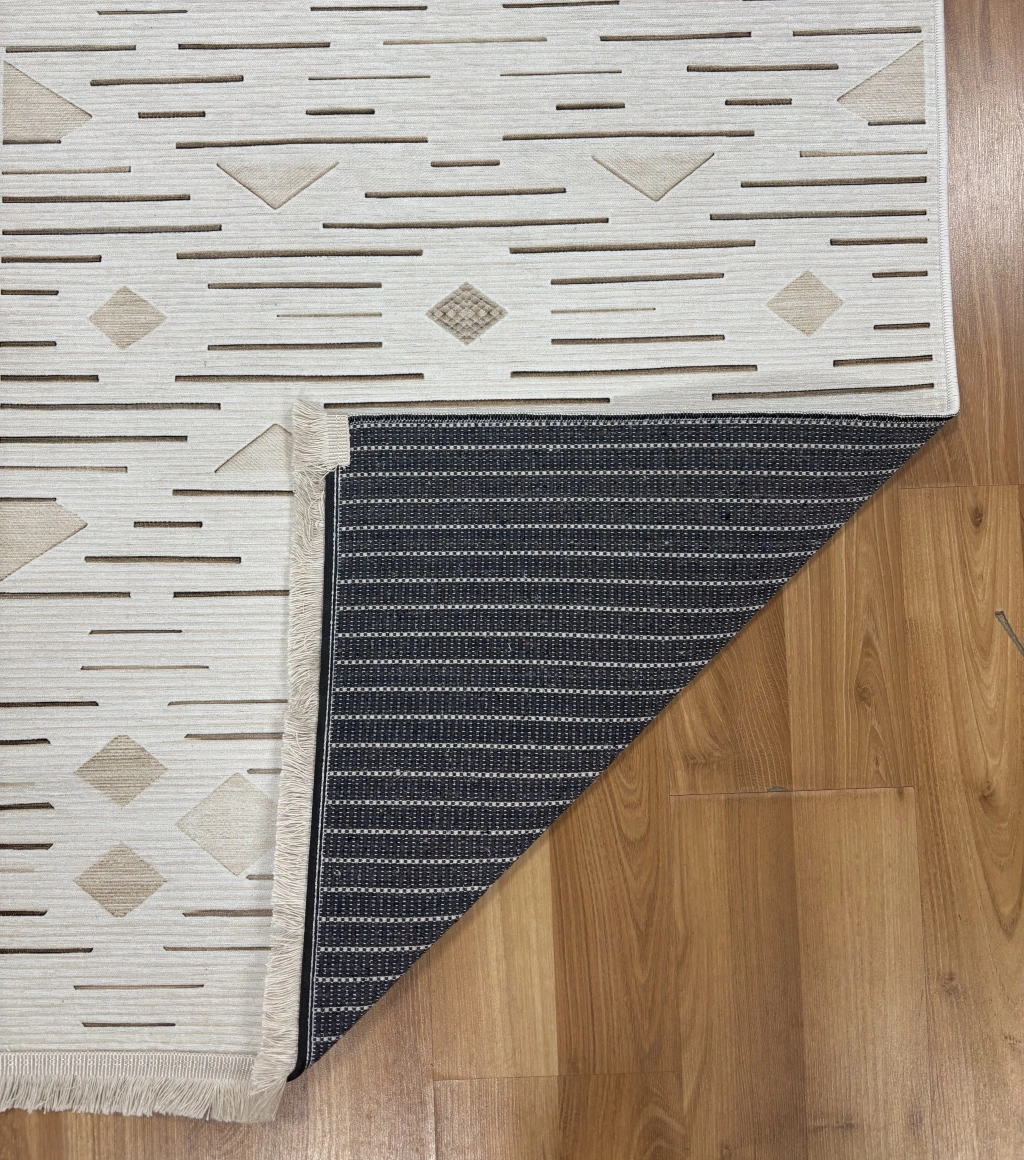 Bademli Halı Şönil Dokuma Taban Dekoratif Halı 1020 Krem