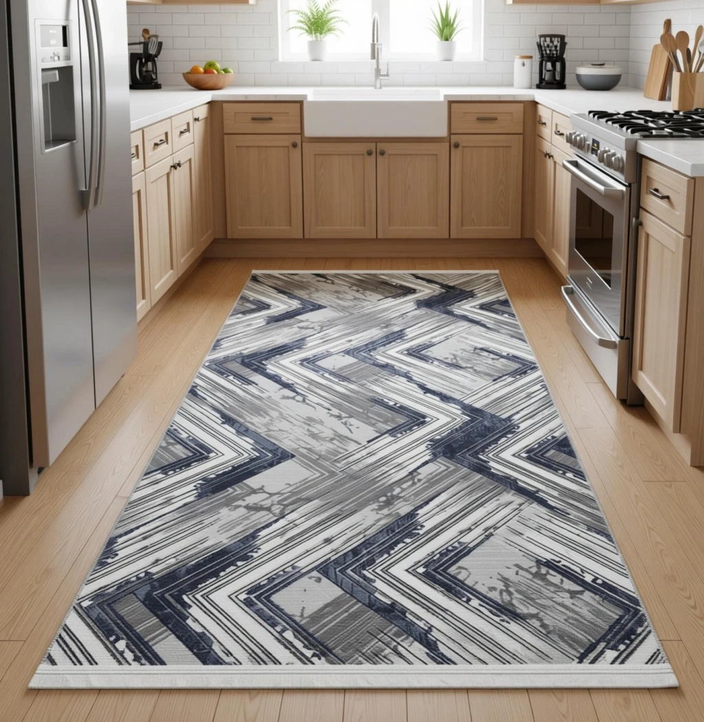 • Çok Yönlü Kullanım: Modern geometrik desenleri sayesinde salon, oturma odası, yatak odası, mutfak ve koridor gibi evin her alanına estetik bir uyum sağlar.