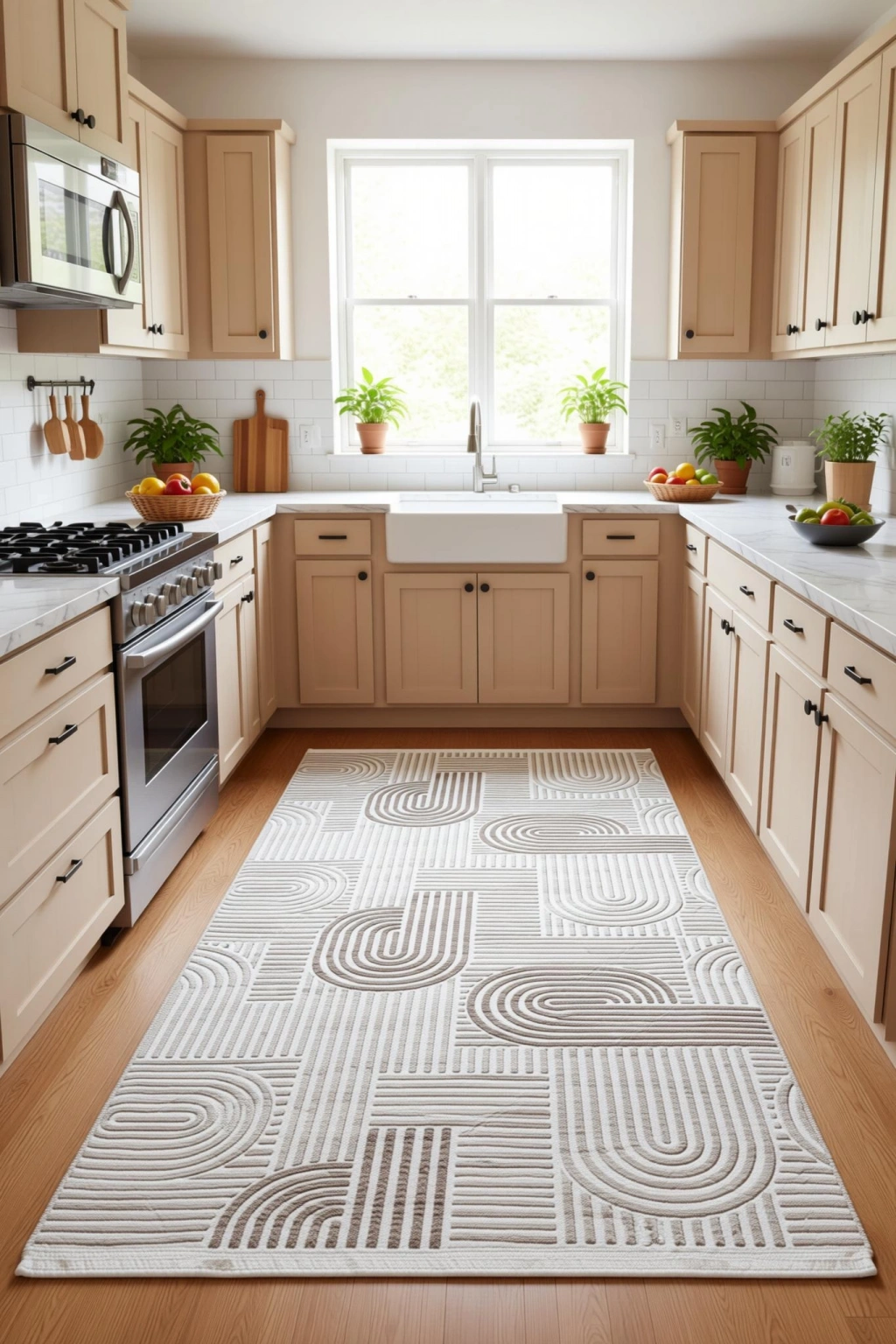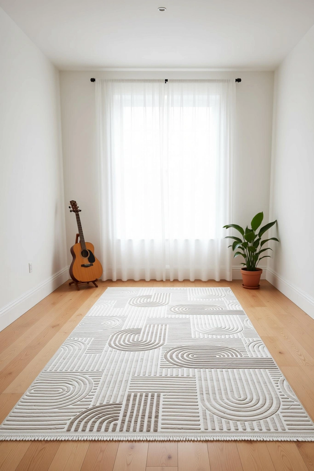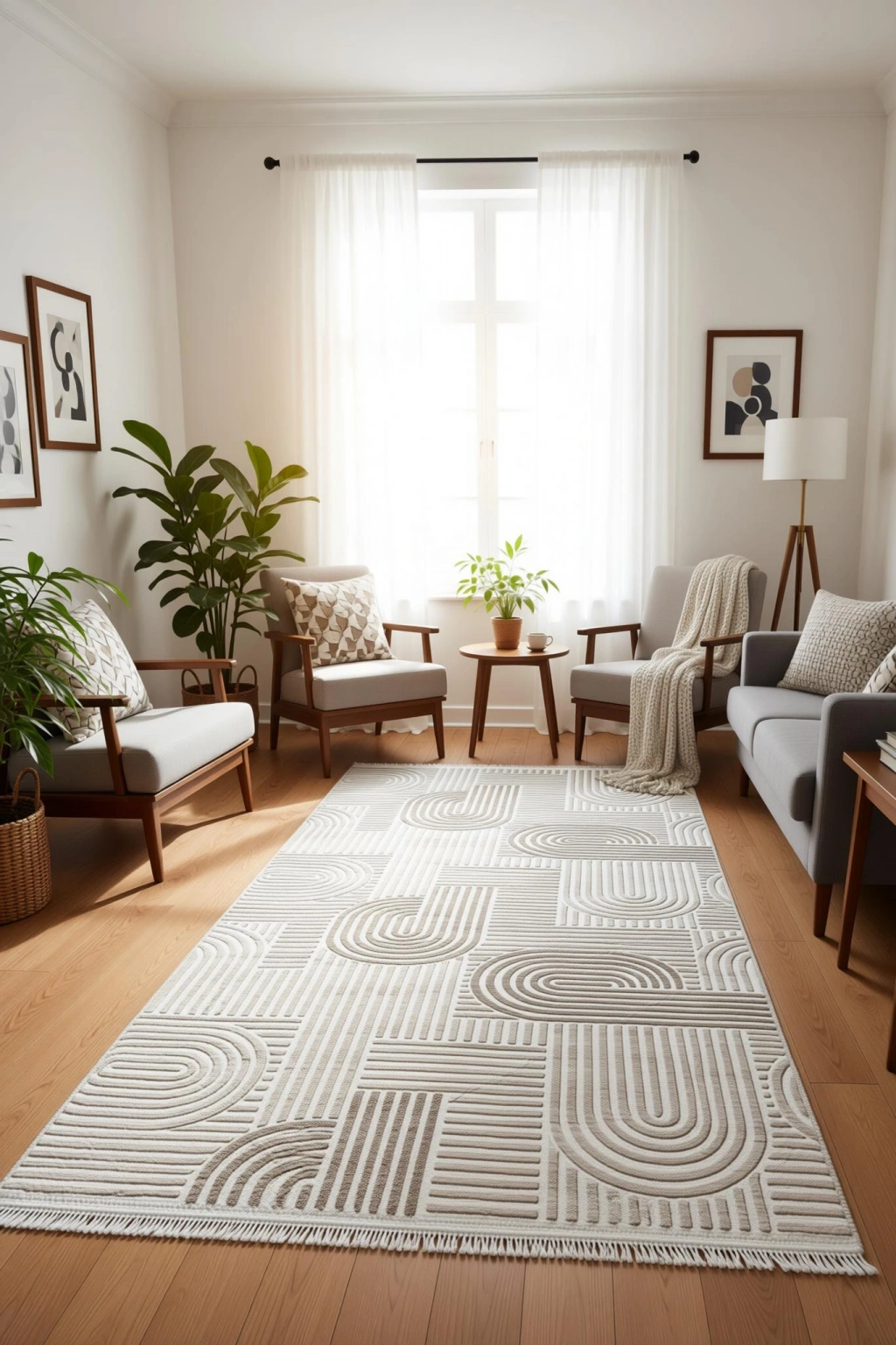• Çok Yönlü Kullanım: Modern geometrik desenleri sayesinde salon, oturma odası, yatak odası, mutfak ve koridor gibi evin her alanına estetik bir uyum sağlar.