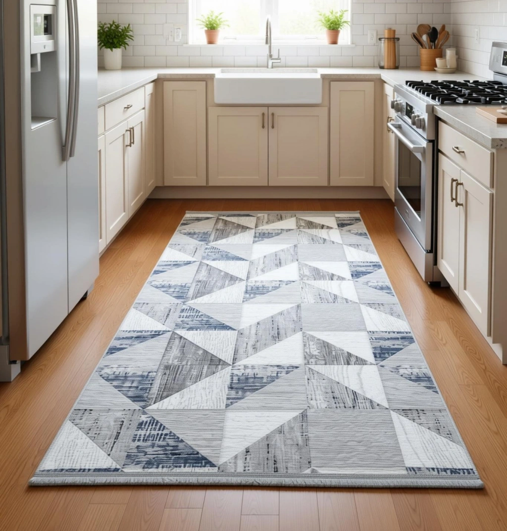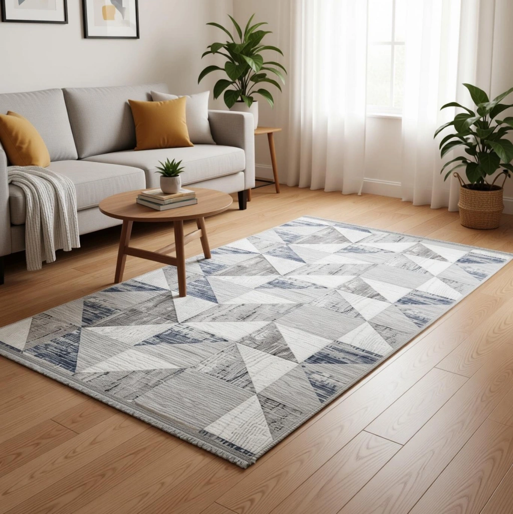 • Çok Yönlü Kullanım: Modern geometrik desenleri sayesinde salon, oturma odası, yatak odası, mutfak ve koridor gibi evin her alanına estetik bir uyum sağlar.
