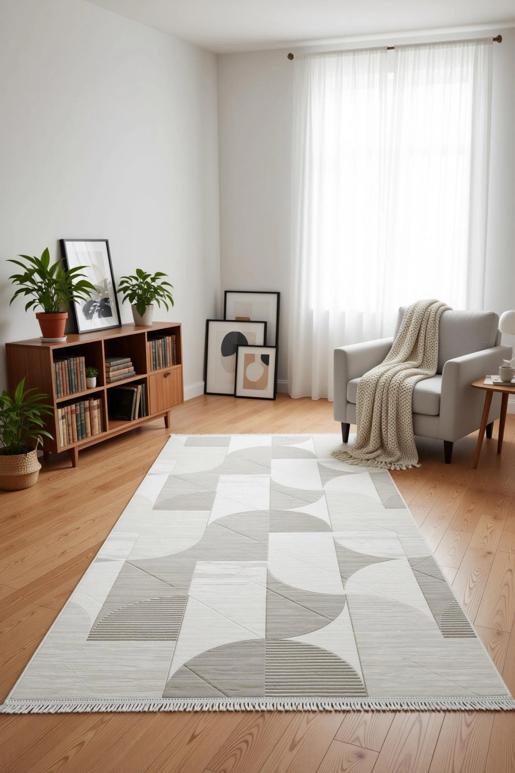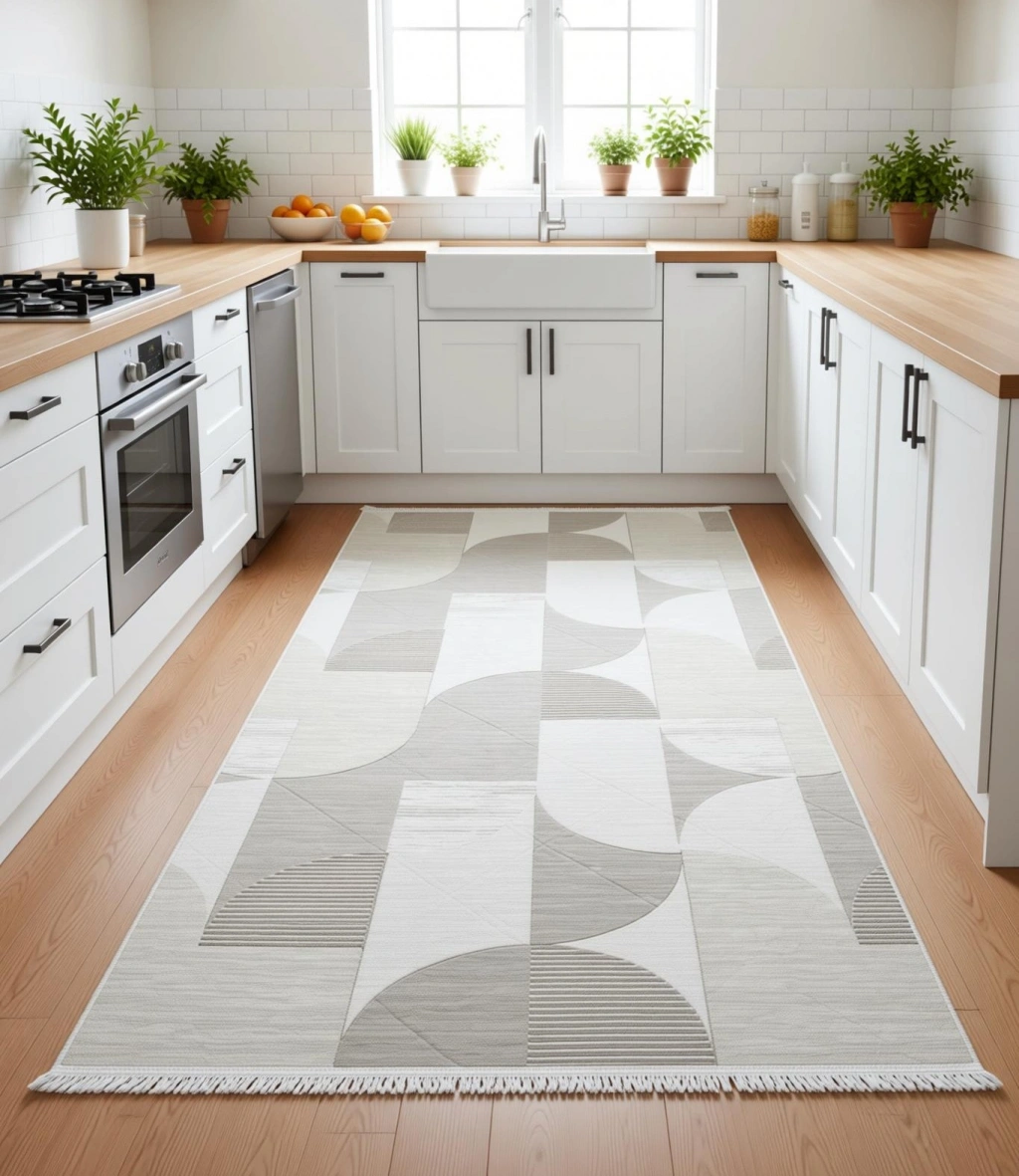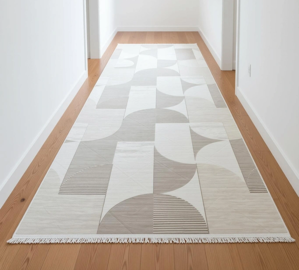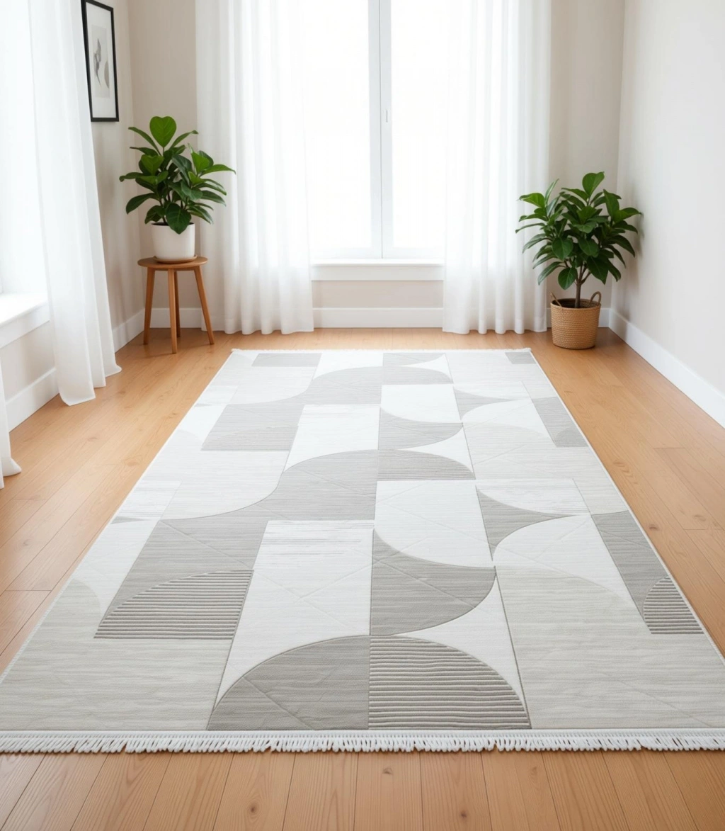 • Çok Yönlü Kullanım: Modern geometrik desenleri sayesinde salon, oturma odası, yatak odası, mutfak ve koridor gibi evin her alanına estetik bir uyum sağlar.